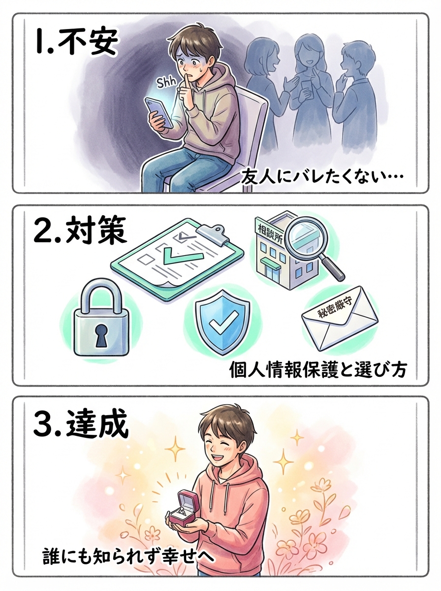 本記事では、プロの視点から友人バレを防ぐための具体的なテクニックと、相談所選びの基準を徹底解説します。