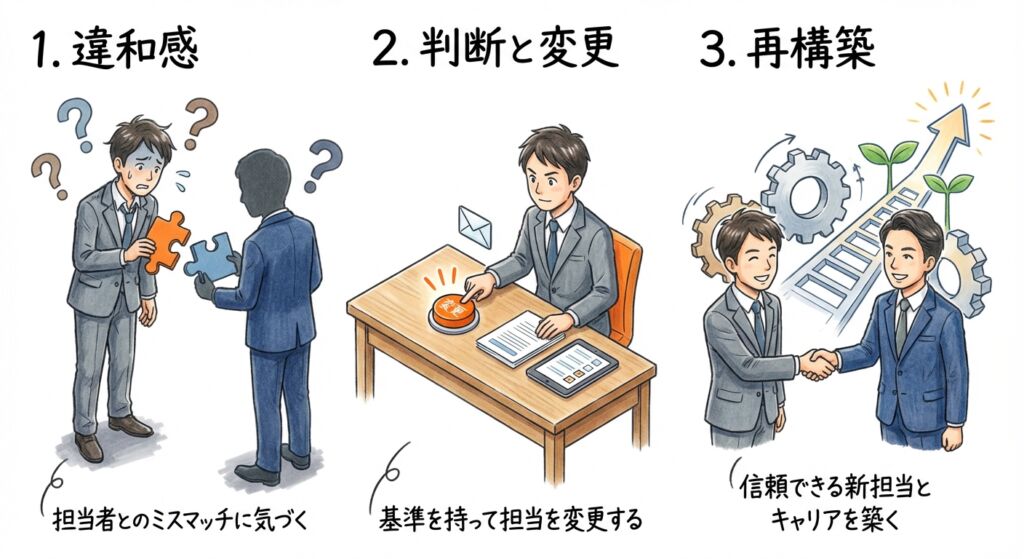 担当者との相性は婚活成功の鍵!実際に担当者を変更して婚活が劇的に改善した30代女性の体験談と、変更のタイミング・方法を解説します。